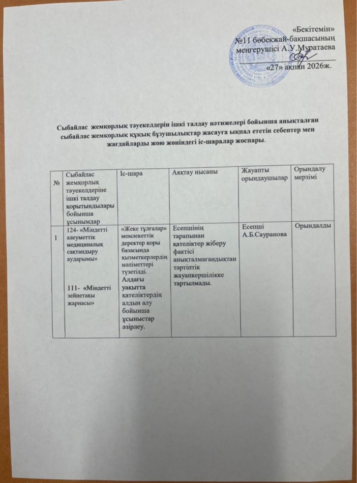 Жою жөніндегі іс-шаралар жоспары » №11 "бөбекжай-бақшасы"
